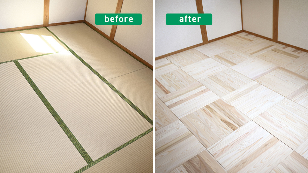 和室から洋室にリノベーション! 手軽に畳からフローリングにするための下地材ユニットができました。 ハリカエ・ベースは木枠と断熱材で構成された畳張替え用の下地材です。1枚50cm×50cmのサイズで、カッターで容易にカットできるため、様々な部屋のサイズに対応できます。 畳を剥がす→ハリカエ・ベースを並べる→フ … 続きを読む ハリカエ・ベース -畳-