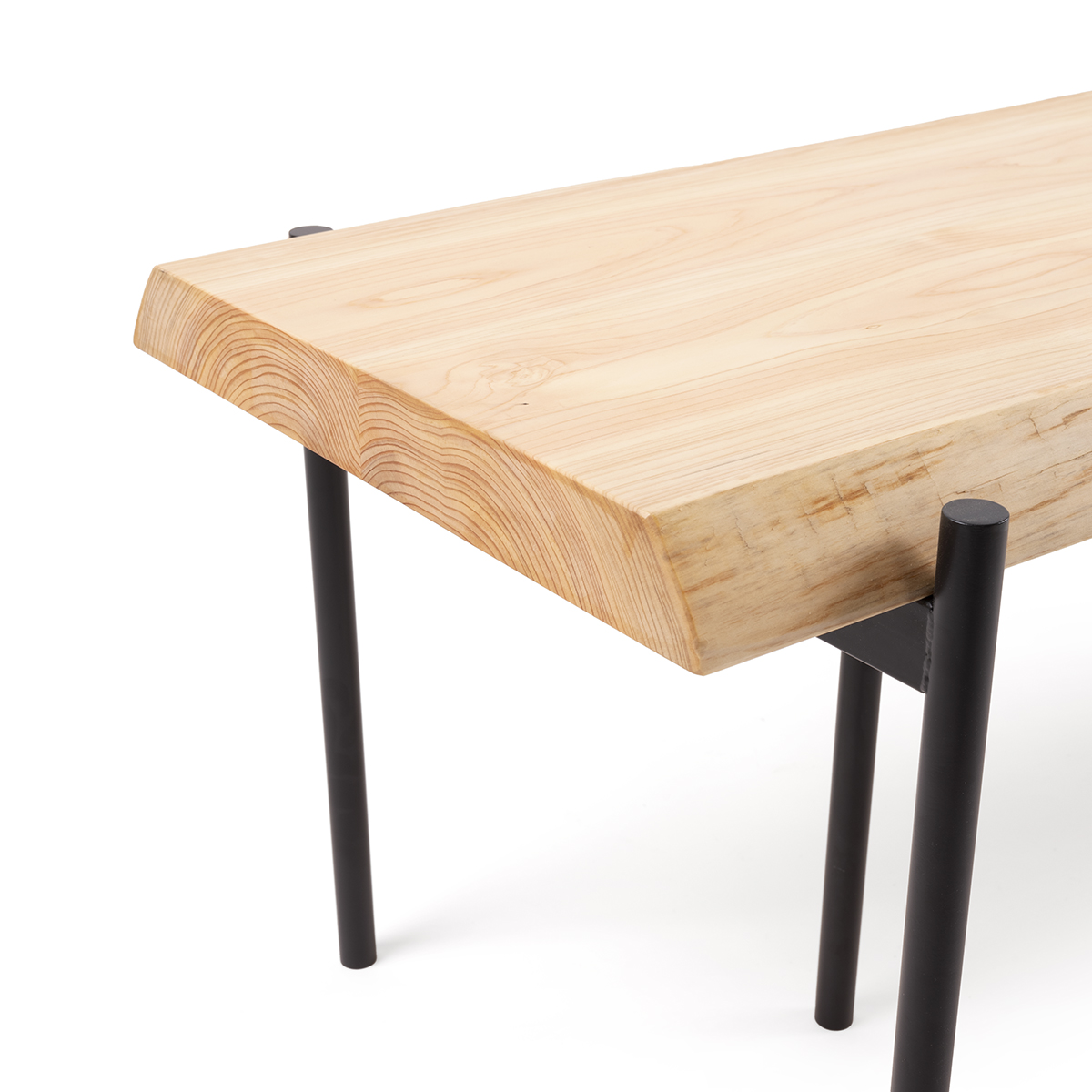 座面の板に厚み4cmのひのきを採用し、木の魅力を厚みや存在感で感じて頂けるものにしました。